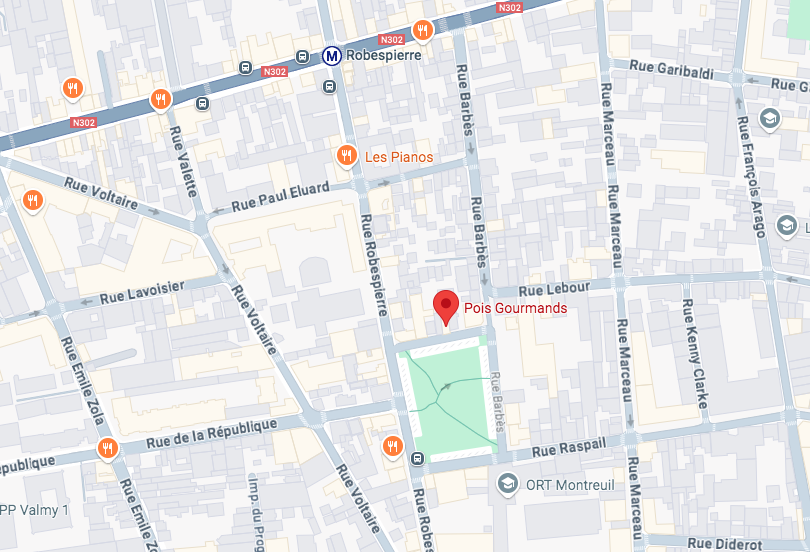 Nous contacter Pour toute demande de privatisation, d’évènement ou de location de cuisine professionnelle, contactez nous : 01 88 50 45 37 restaurantpoisgourmands@gmail.com 8 PLACE DE LA REPUBLIQUE, 93100 MONTREUIL